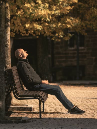 Mal ist es das Gegenteil: zwei Menschen auf einer Bank, ruhig, nebeneinander und doch jeder in seiner Welt.